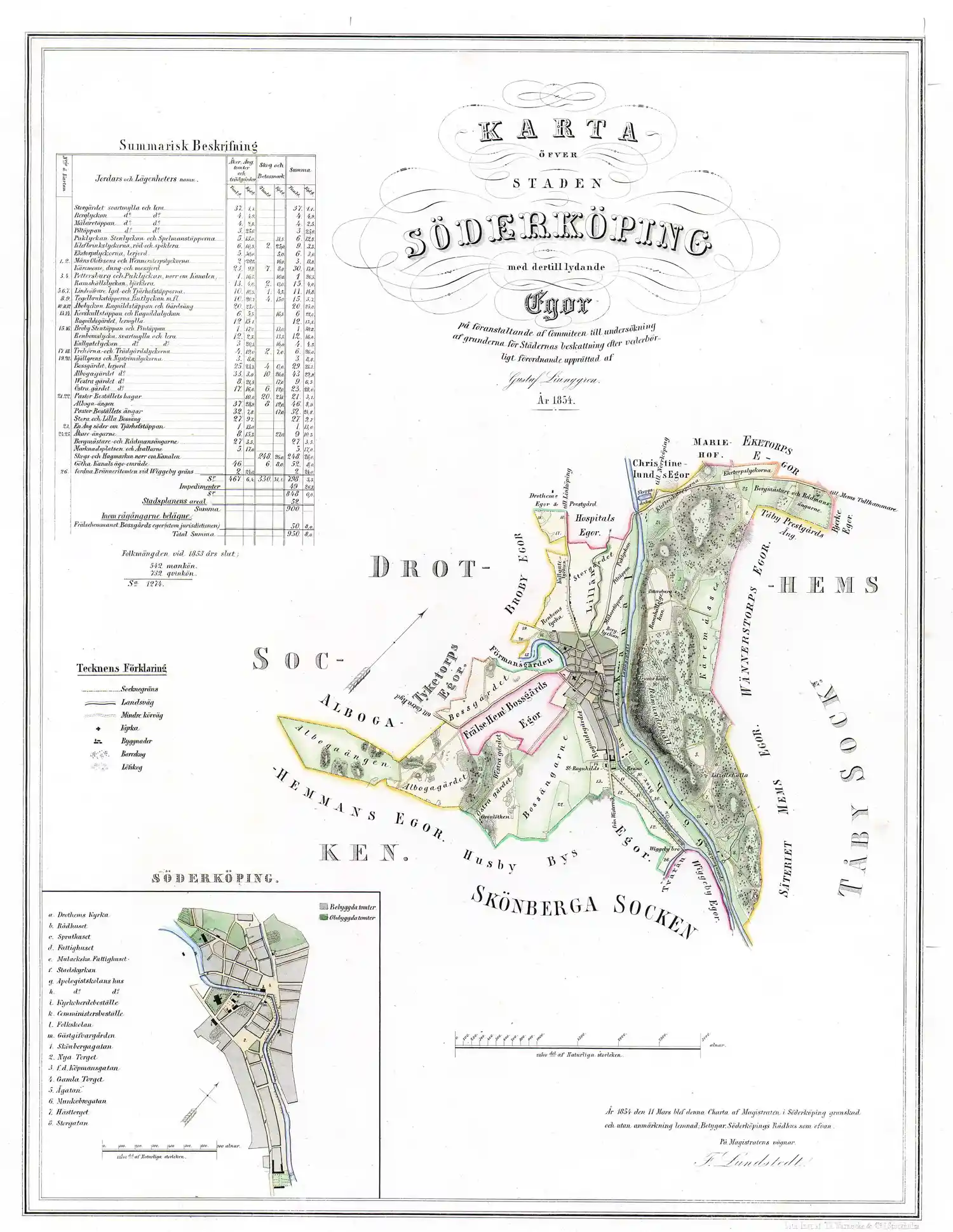 Karta över staden Söderköping med därtill lydande ägor