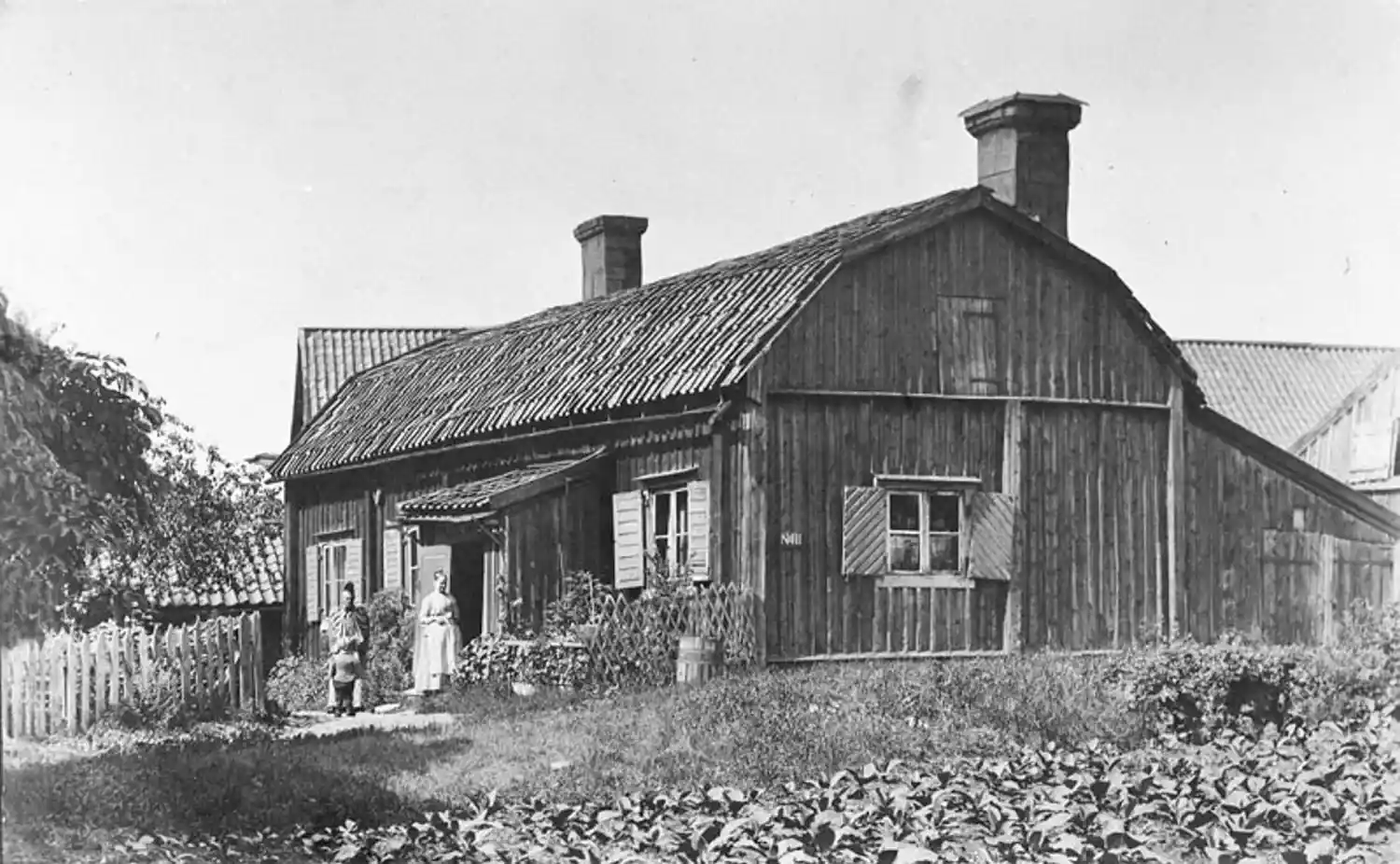 Exteriör av träbyggnad som inrymmer tullvaktmästarebostad. Västra Humlegårdsgatan 36.
