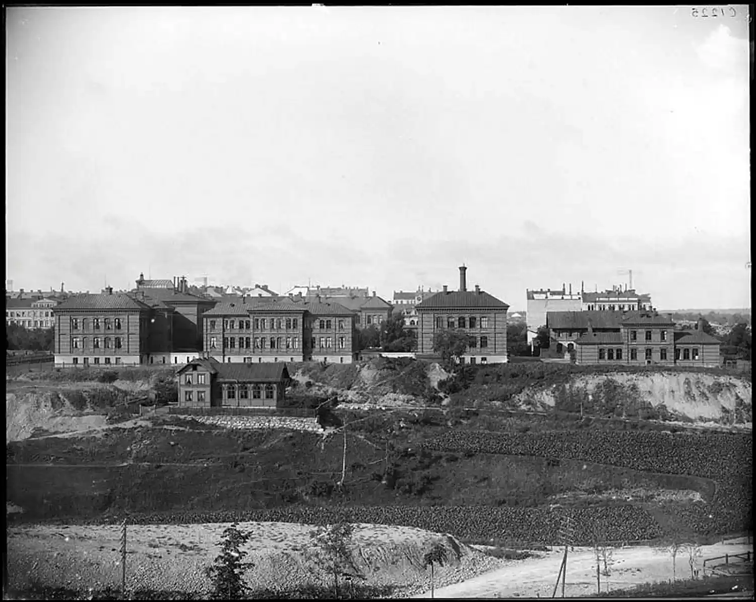 Det första barnhuset i Stockholm öppnade 1638 och låg där Norra Latin ligger idag. År 1885 flyttade man till de nybyggda lokalerna på fotografiet på Norrtullsgatan. I förgrunden syns Vanadislunden