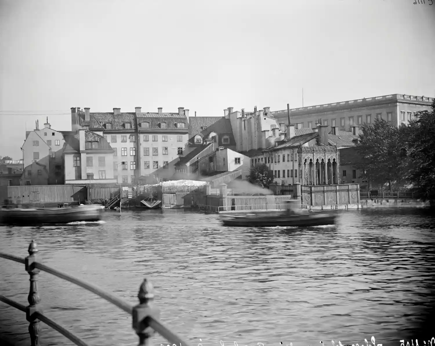 Helgeandsholmen, från väster, med Lorentz´ska badinrättningen