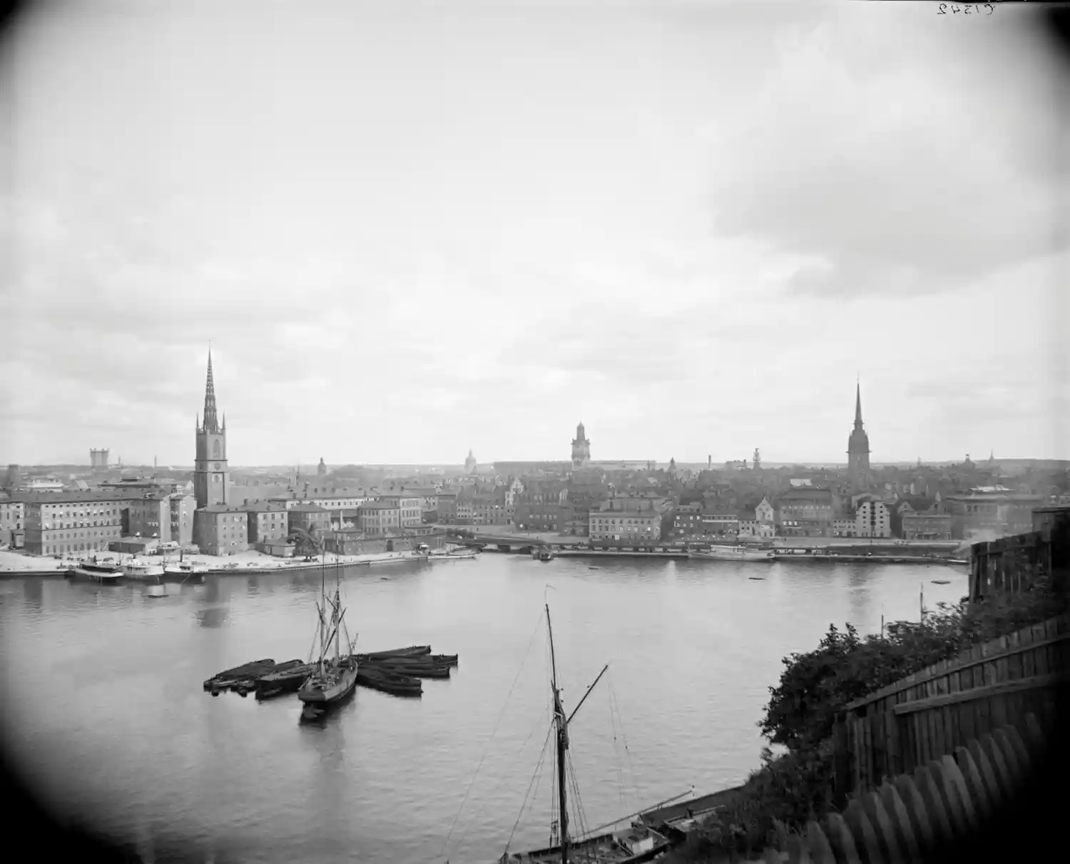 Stadsdel: SödermalmKvarter: LudvigsbergPlats-detaljer: Skinnarviksberget, RiddarfjärdenNyckelord: Segelfartyg, Allmänna utsikter, Båtar, Pråmar