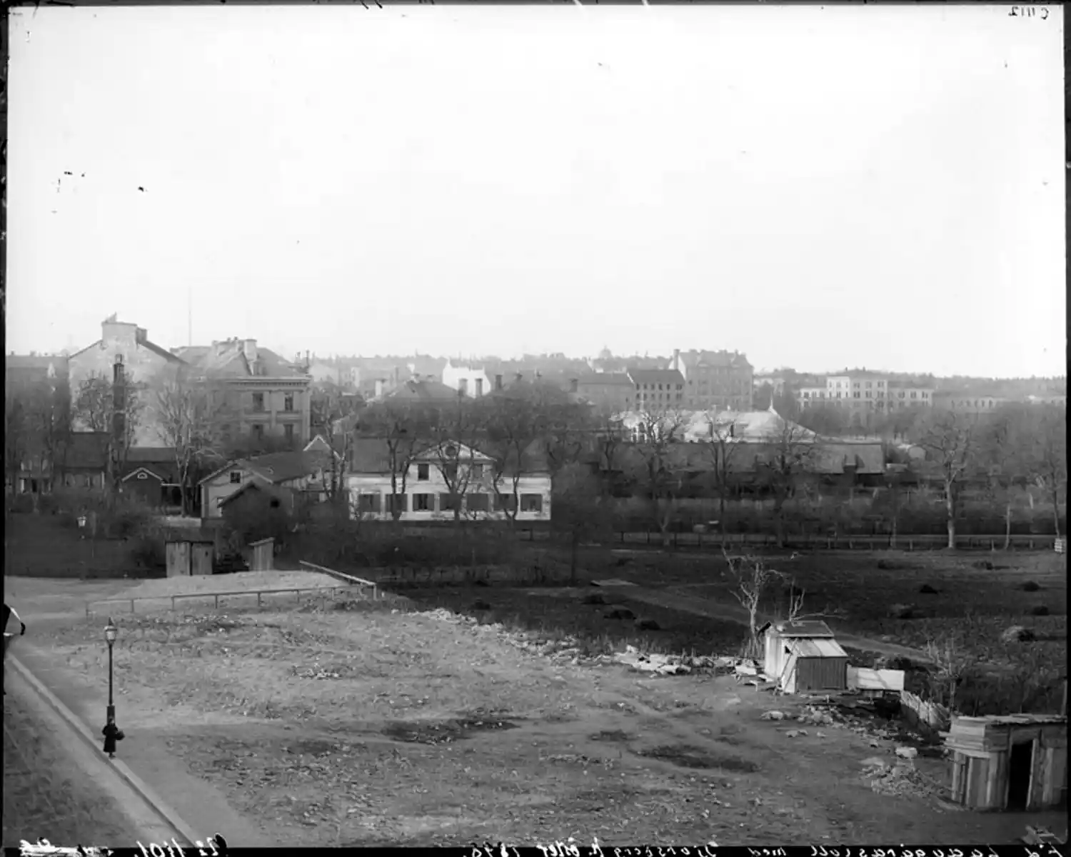 Utsikt över Ladugårdslands tull. Nuvarande Karlaplan.