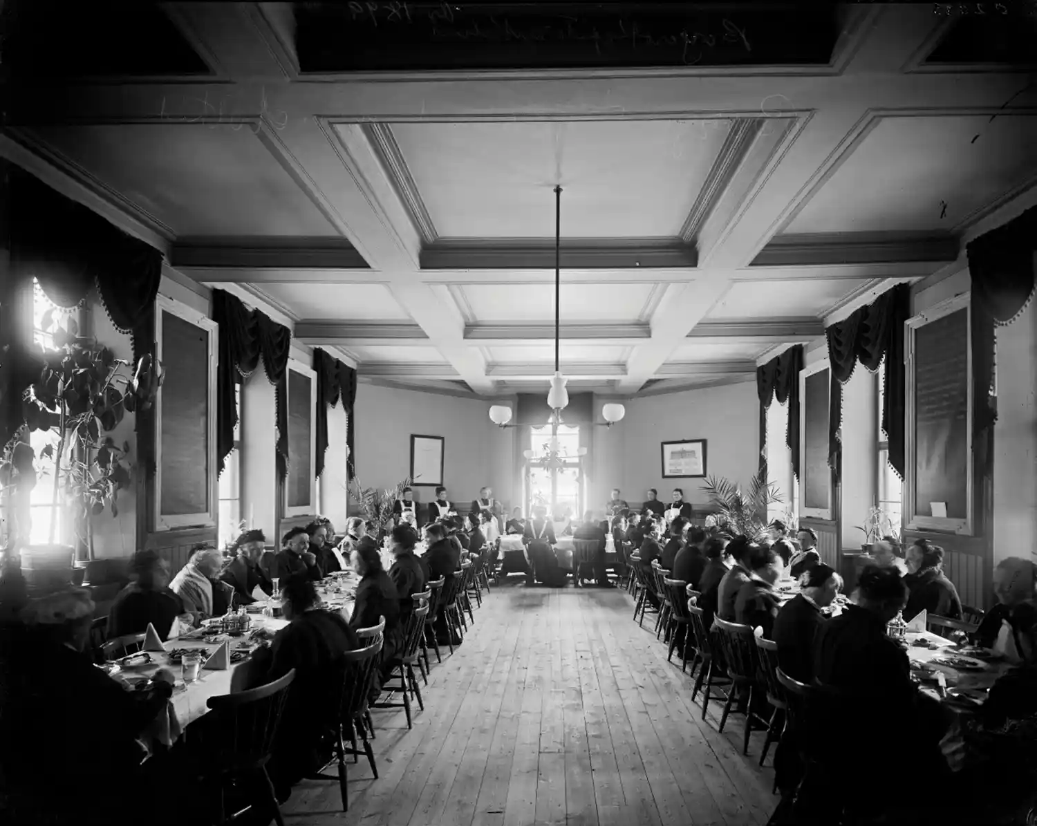 Interiör från matsalen i Borgerskapets änkehus på Norrtullsgatan 45.