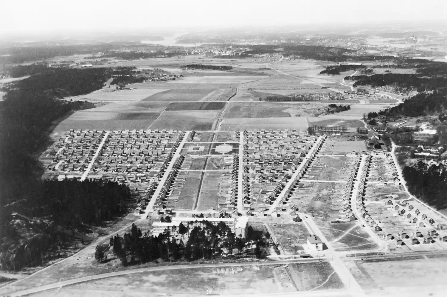 Nyckelord: Parker, Småhus (SMÅA), Åkrar, Stadsplanering, Gårdar, Flygbilder, Skolor