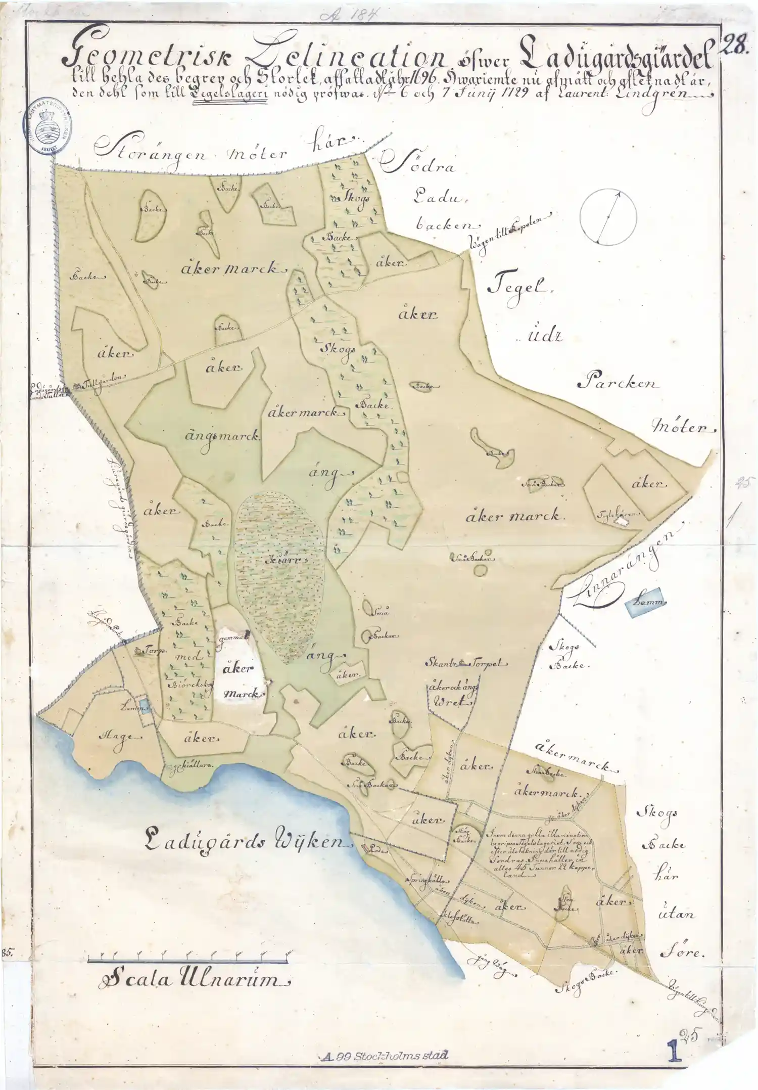 Karta över Ladugårdsgärdet och förslag till plats för tegelslageri