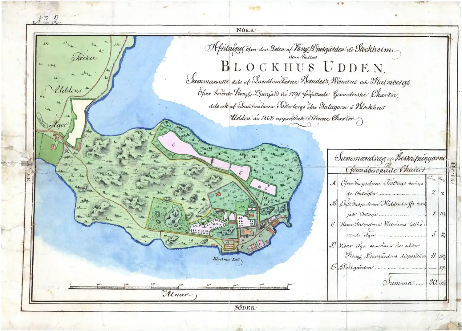 Avritning av den delen av Kungliga Djurgården vid Stockholm som kallas Blockhusudden