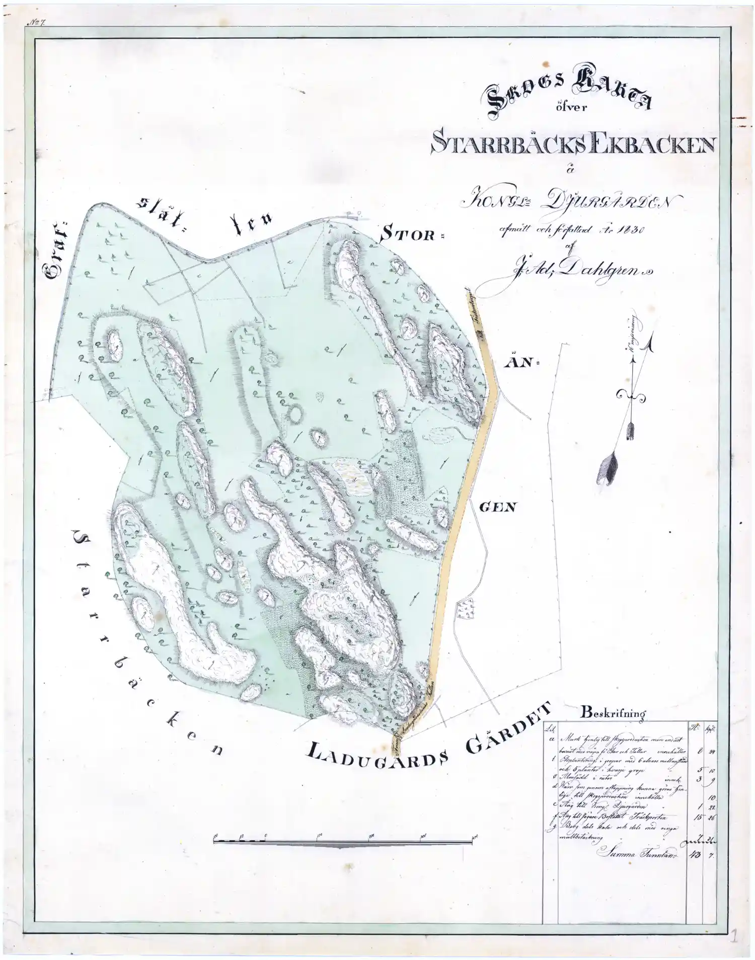 Skogskarta över Starrbäcks Ekbacken å Kungliga Djurgården