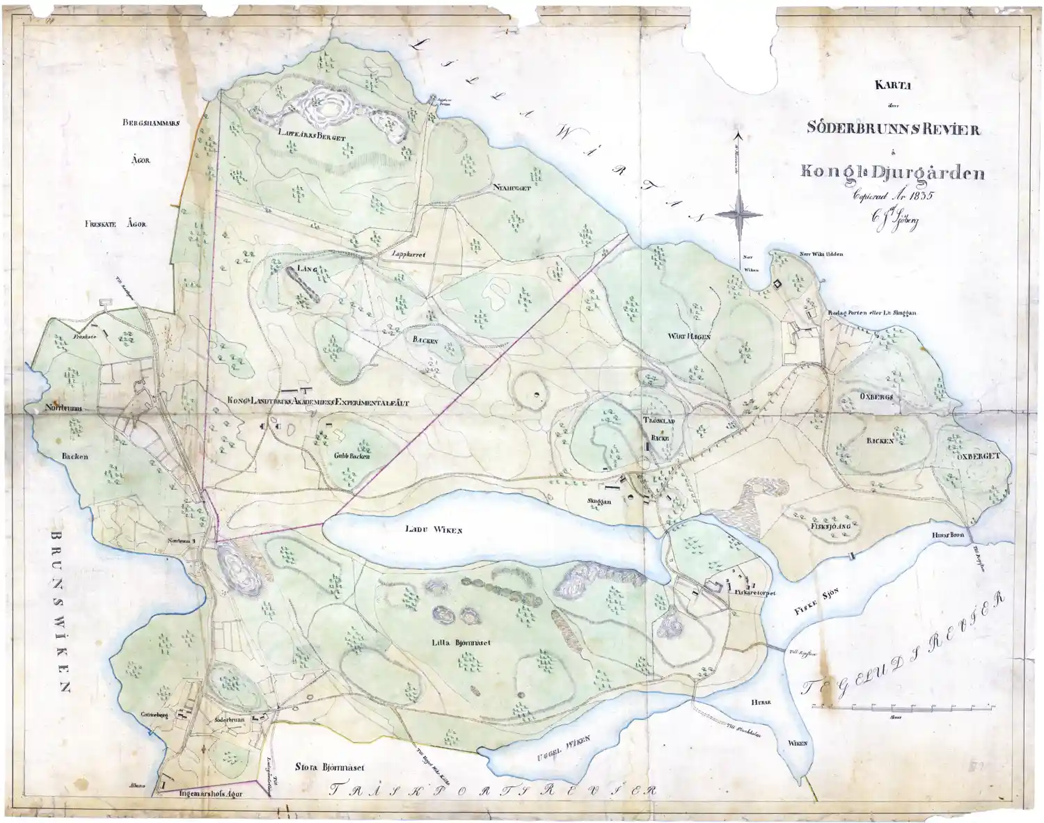 Karta över Söderbrunns revir å Kungliga Djurgården