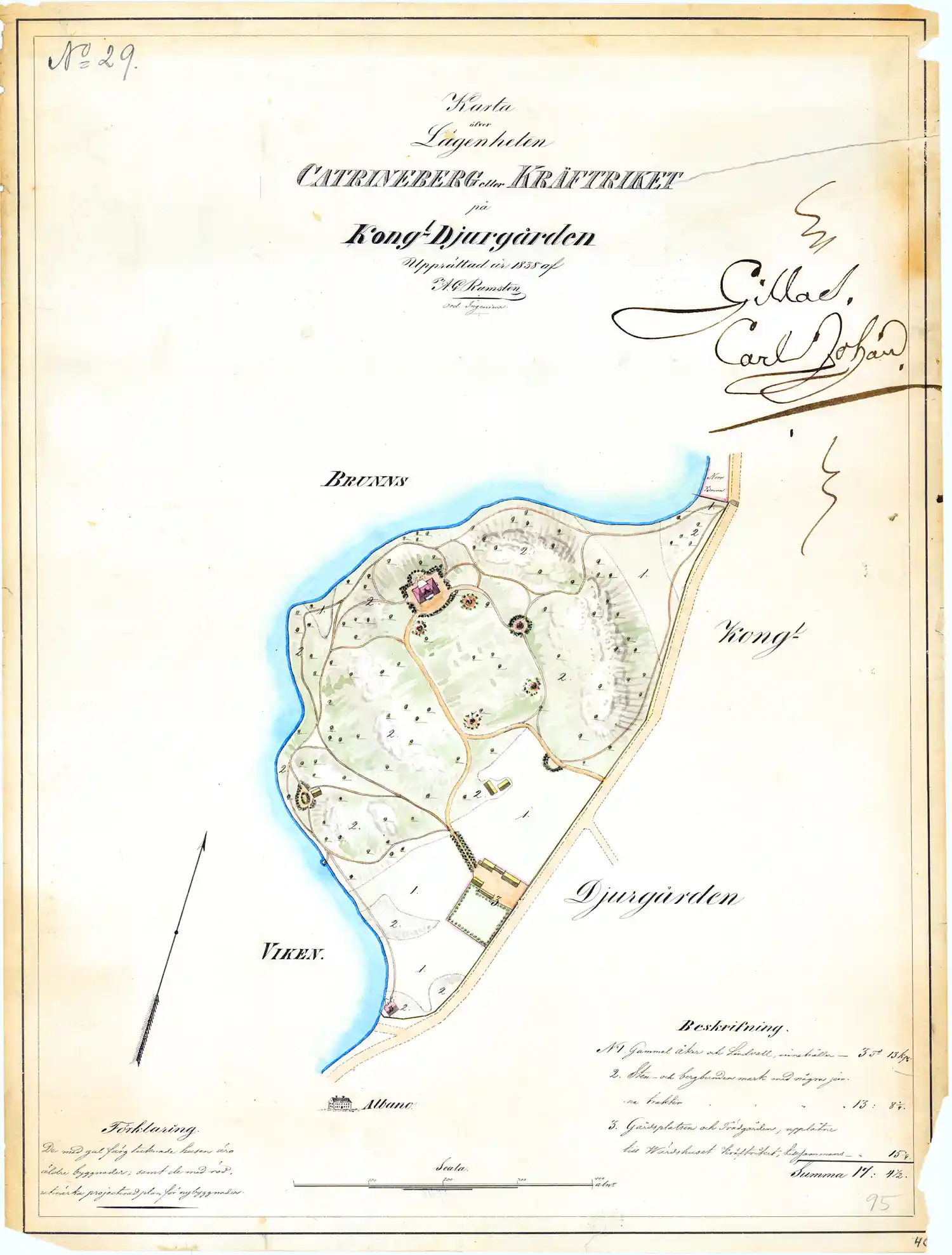 Karta över lägenheten Catrineberg eller Kräftriket på Kungliga Djurgården