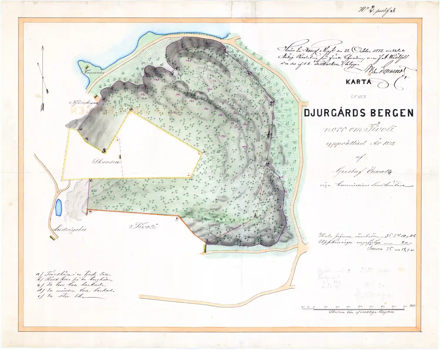 Karta över Djurgårdsbergen norr om Tivoli