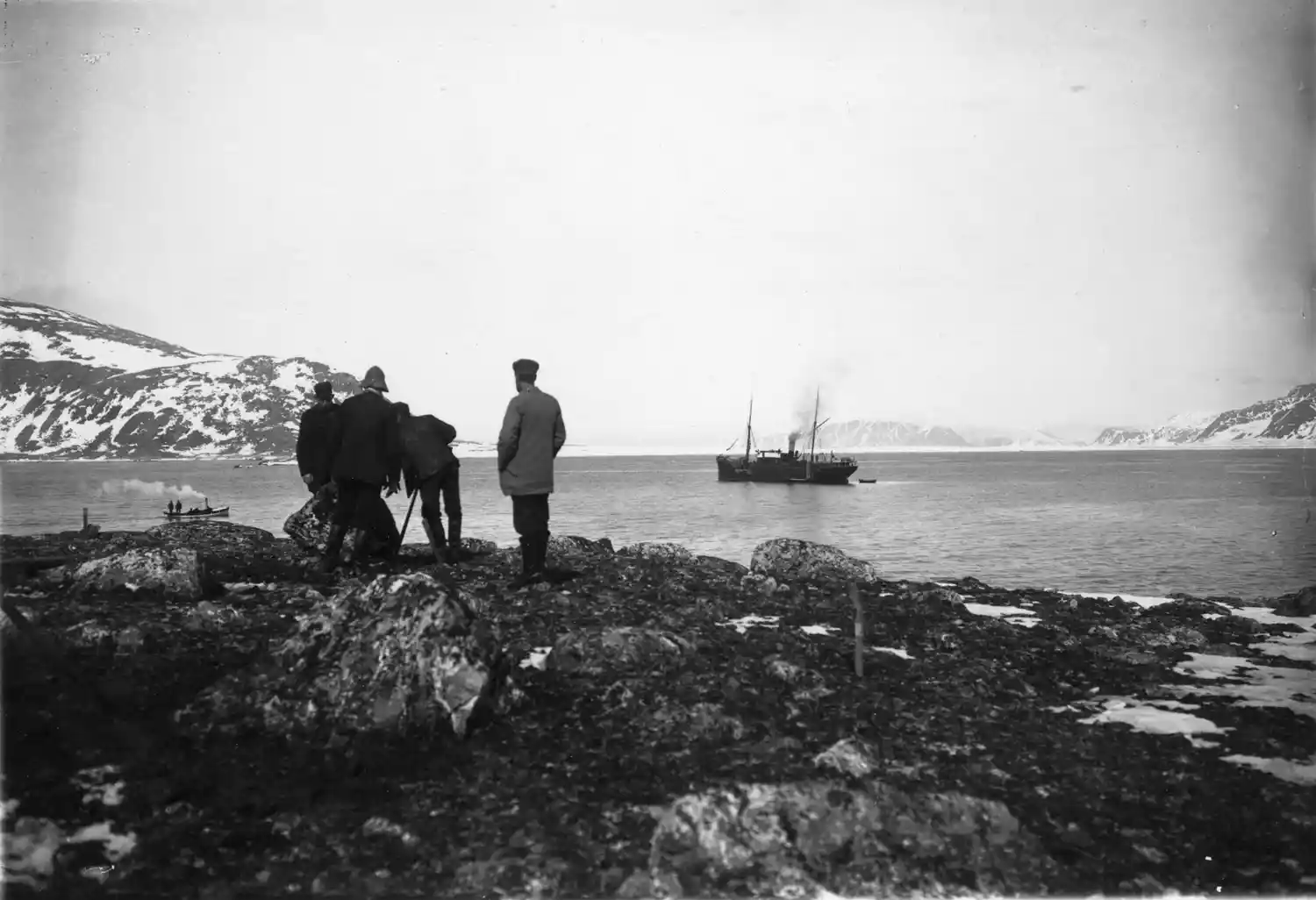 Platsen för ballonghuset markeras. Andrée till vänster och sannolikt Ekholm till höger.